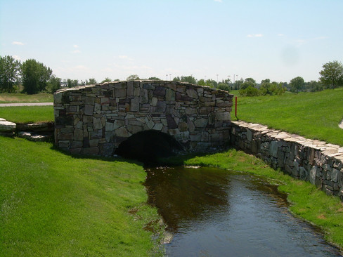 Scope: Design/Build (5) arch bridge stream crossings; installed 225,000 sf of interlocking paver cart paths; installed 3,021 sf dry-laid fieldstone walls; 3,800 LF of granite block curbing.